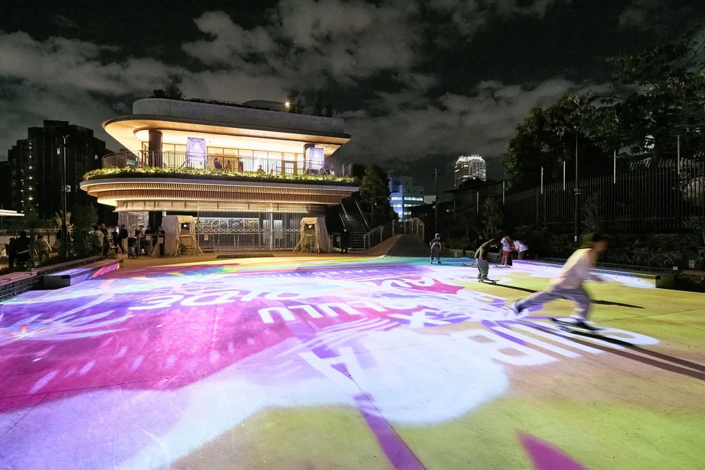 「夜に開いているスケートボードパークはあまりない。この期間限定ではありますが、21時までのナイトタイムに思う存分スケートボードが楽しめ、さらにはこれまで体感したことのないプロジェクションマッピングの演出で盛り上げることが、PR効果をより拡大させると考えています」と関係者は説明します。